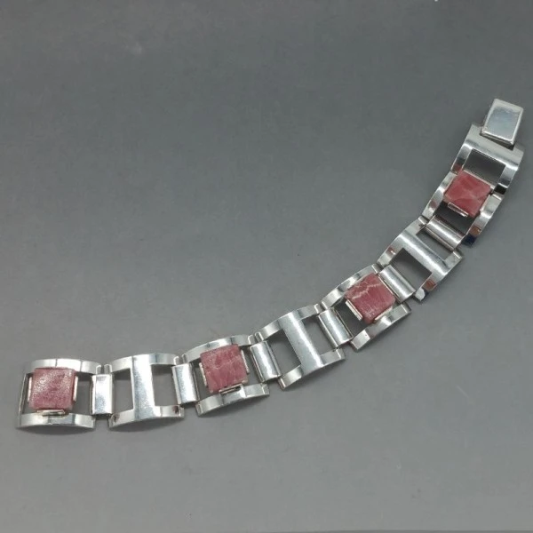 Beautiful Unidor 1960's vintage modernist brutalist silver bracelet with pink gem stones. It is marked with "UNIDOR and 925" .The bracelet measures approximately 21 cm (8.5 inches). It is in very good vintage condition.Weight is 26.6 grams. It is estimated to ..