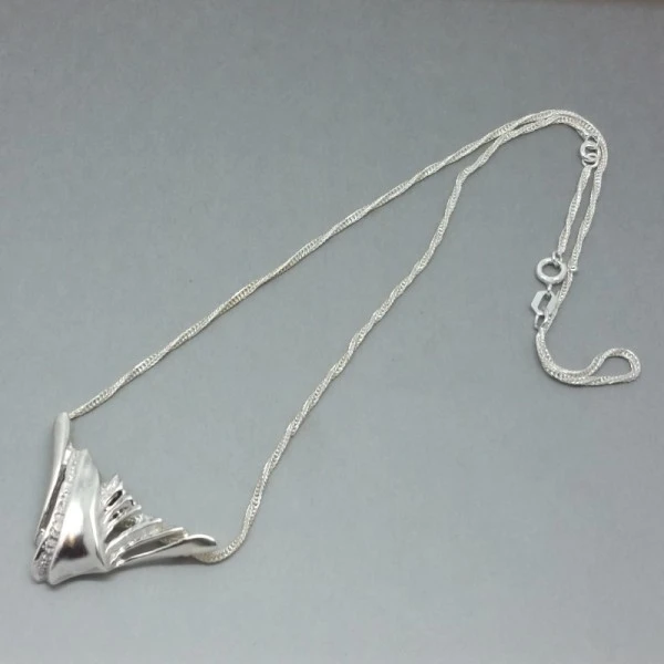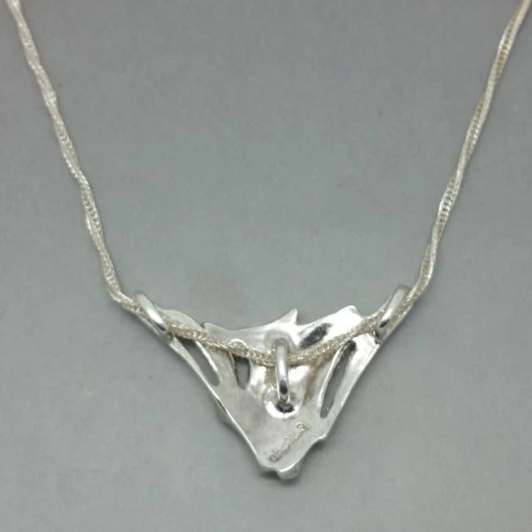 Astri Holthe Norwegian vintage modernist textured sterling silver necklace. The rear of the necklace is signed with" aha 925 S". It has an adjustable 16 inch (41cm) rope effect sterling silver chain with a spring ring clasp .The triangular part measures approximately 3.4 x 2.1 cm . It is in very good vintage condition . Condition: Very Good Colour/Gemstone: Silver Metal: Sterling Silver