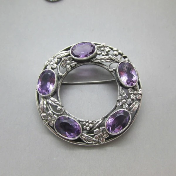 Condition: Excellent Colour/gemstone: Amethyst and silver Metal: Sterling Silver Size:Approximately 4cm diameter . Era: 1967