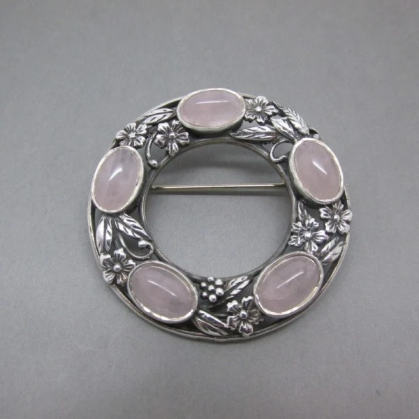 Condition: Very Good Colour/gemstone: Rose Quartz and silver Metal: Sterling Silver Size:Approximately 4cm diameter . Era: 1990