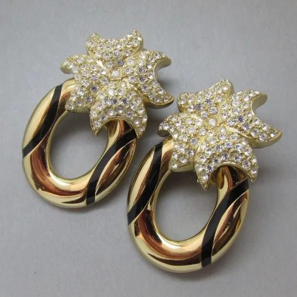 Condition: Excellent Colour:Gold/Crystal/Black Metal: Gold Plated Size: 4.3 cm x 2.7 cm wide approximately Era: 1980's