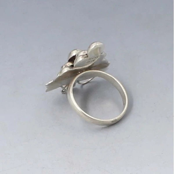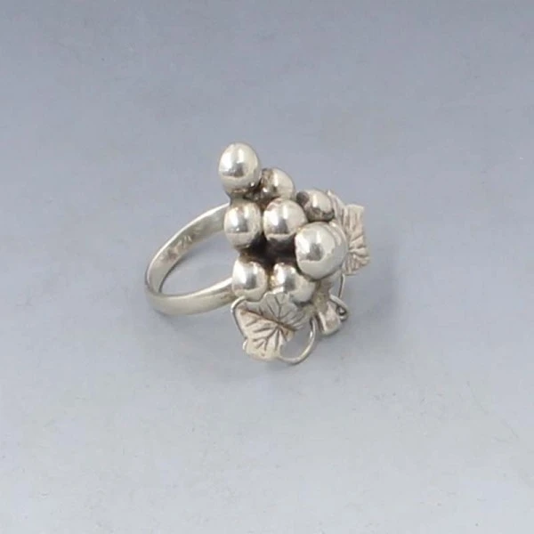 Herman Siersbol, Denmark, sterling ring with leaf and berries design. It is signed "HS 925" on the rear. The ring measures approximately 2.5 x 2.4 cm. Ring is a UK size N or N 1/2. Weight is 5 grams.Very good condition. A matching necklace can be found here. Matching earrings are available here.