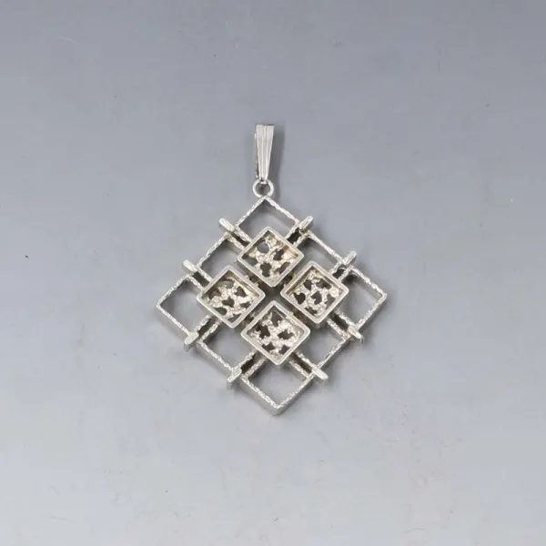 Kollmar and Jourdan, Germany, 1970's vintage modernist sterling silver pendant .It is marked KJ with the arrow symbol for Kollmar and Jourdan, as well as "925" on the bail.. The pendant measures approximately 3.5 cm x 3.5 cm wide not including the bail. Weight is 7 grams. It is in very good condition.