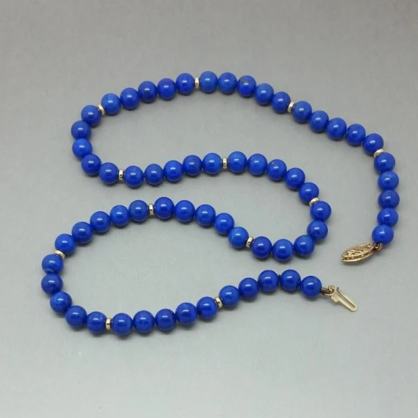 Condition: Very Good Colour/Gemstone:Blue lapis lazuli Metal: 9 carat gold Size: 16 inches long (41cm) Era: