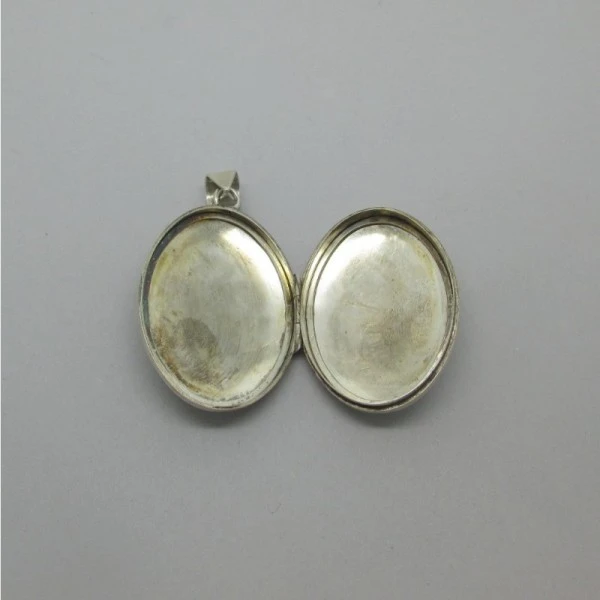 Condition: Very Good Colour/Gemstone: Silver Metal: Sterling Silver Size: 3.8 x 2.9 cm locket with 26inch ( 66 cm) chain Era: 1979