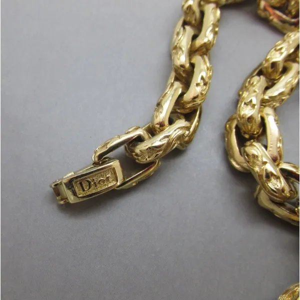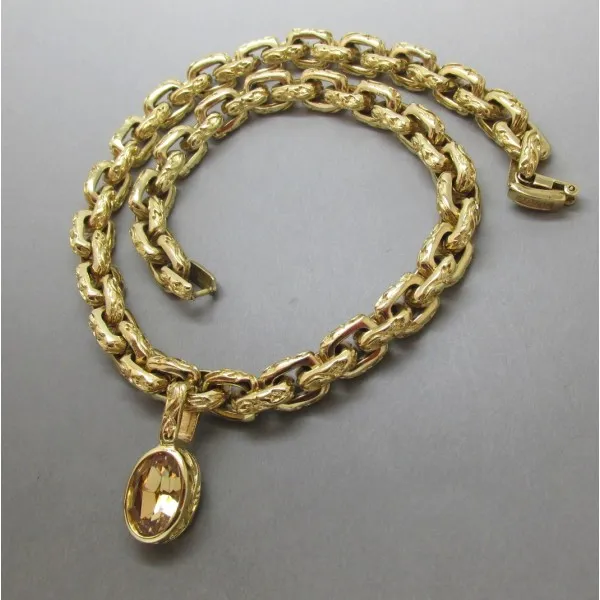 and is marked with the " Dior" signature. The necklace chain measures approximately 16 inches (41cm) long and the oval citrine crystal measures approximately 1.5 x 1.1cm. The necklace is in excellent condition and comes with the original grey Christian Dior box.This is a beautiful quality Christian Dior costume necklace dating approximately from the 1980's.