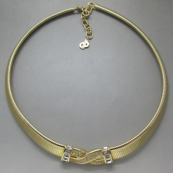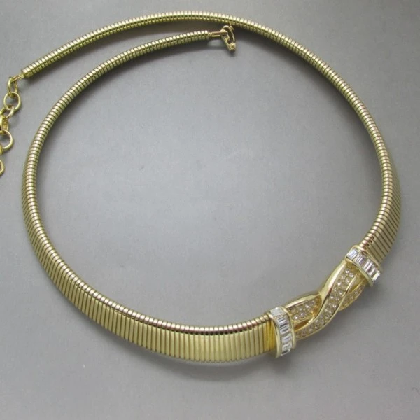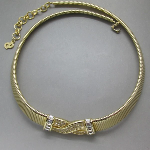.Condition: Excellent Colour/Gemstone: Gold Tone and Clear Crystal Metal: GoldTone Size: 15 to 17 inches (38 to 43cm) Era: 1980's